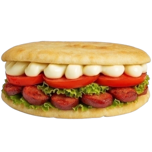 Calabresa fatiada, mussarela, ovos, tomate, alface e maionese